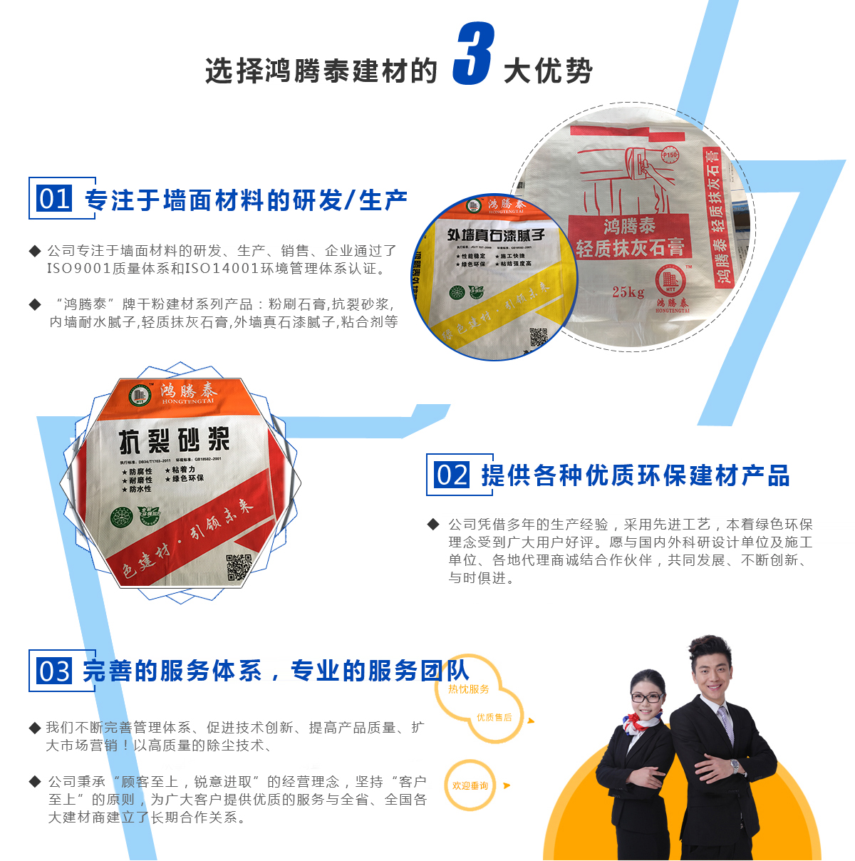 安徽鴻騰泰環(huán)保建材有限公司,坐落于中國(guó)科技明珠城合肥市。是一家專(zhuān)業(yè)建筑節(jié)能企業(yè),專(zhuān)注于建筑節(jié)能產(chǎn)品的研發(fā)與生產(chǎn),系統(tǒng)材料的集成及保溫工程的施工。主要銷(xiāo)售安徽浙江|江蘇地區(qū)的輕質(zhì)抹灰石膏,乳膠漆、膩?zhàn)雍退苛弦约鞍不諒椥阅佔(zhàn)樱|(zhì)量上乘的產(chǎn)品,一直深受著社會(huì)各界的好評(píng)。它是集科研、生產(chǎn)施工、銷(xiāo)售為一體的實(shí)業(yè)公司,且是華東地區(qū)涂料行業(yè)知名企業(yè)。我們一直致力于建筑用抹灰石膏保溫砂漿的開(kāi)發(fā),生產(chǎn)及推廣事業(yè),多年的專(zhuān)業(yè)發(fā)展造就了成熟的品質(zhì),積累了豐富的經(jīng)驗(yàn),均屬技術(shù)先進(jìn)、質(zhì)量上乘的產(chǎn)品,一直深受著社會(huì)各界的好評(píng)。我公司生產(chǎn)基地?fù)碛袑挸āF(xiàn)代的標(biāo)準(zhǔn)廠房,現(xiàn)有有生產(chǎn)用房10000平米同時(shí)擁有2條全自動(dòng)高速干粉混合生產(chǎn)線和微電腦灌裝機(jī)以及2套先進(jìn)...